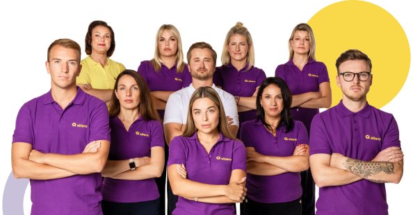 Altero meeskonda kuulub üle 40 oma ala professionaali – müügi-, IT-, finants-, turundus-, toote- ja äriarendus. Otsime pidevalt juurde meeskonnaliikmeid, kelle abiga teeme üheskoos täie hooga, et klient saaks parima teeninduse.
